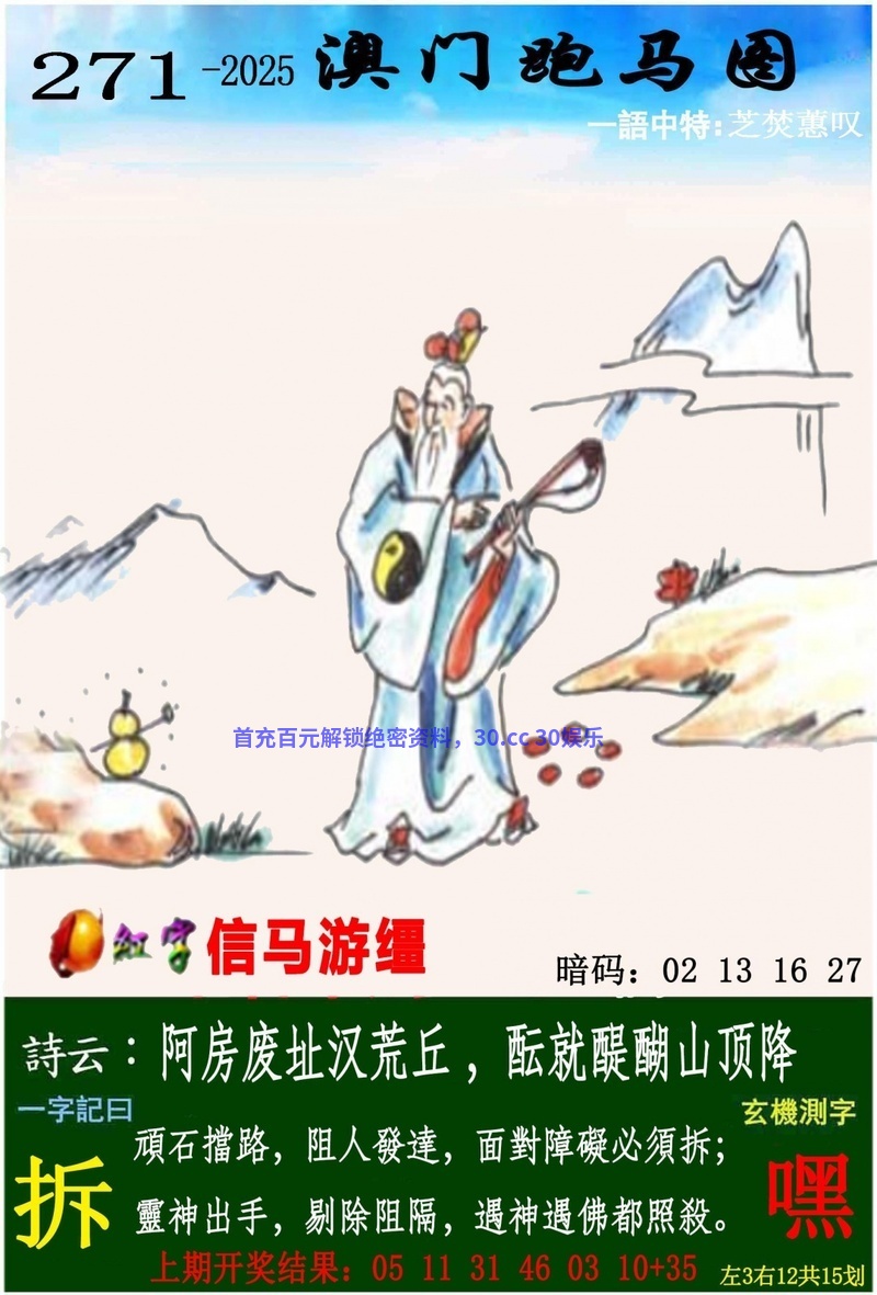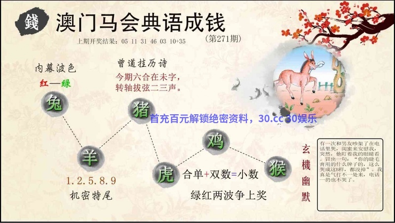 271期:男女两肖『女肖+虎马』开鼠06错 |